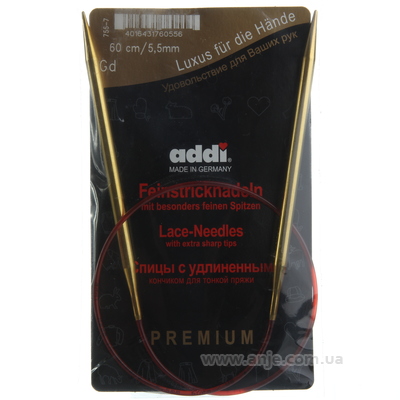 Спиці «Addi - 755-70 / 60 Спиці позолочені кругові з подовженим кінчиком довжина 60 см 5.50 мм».