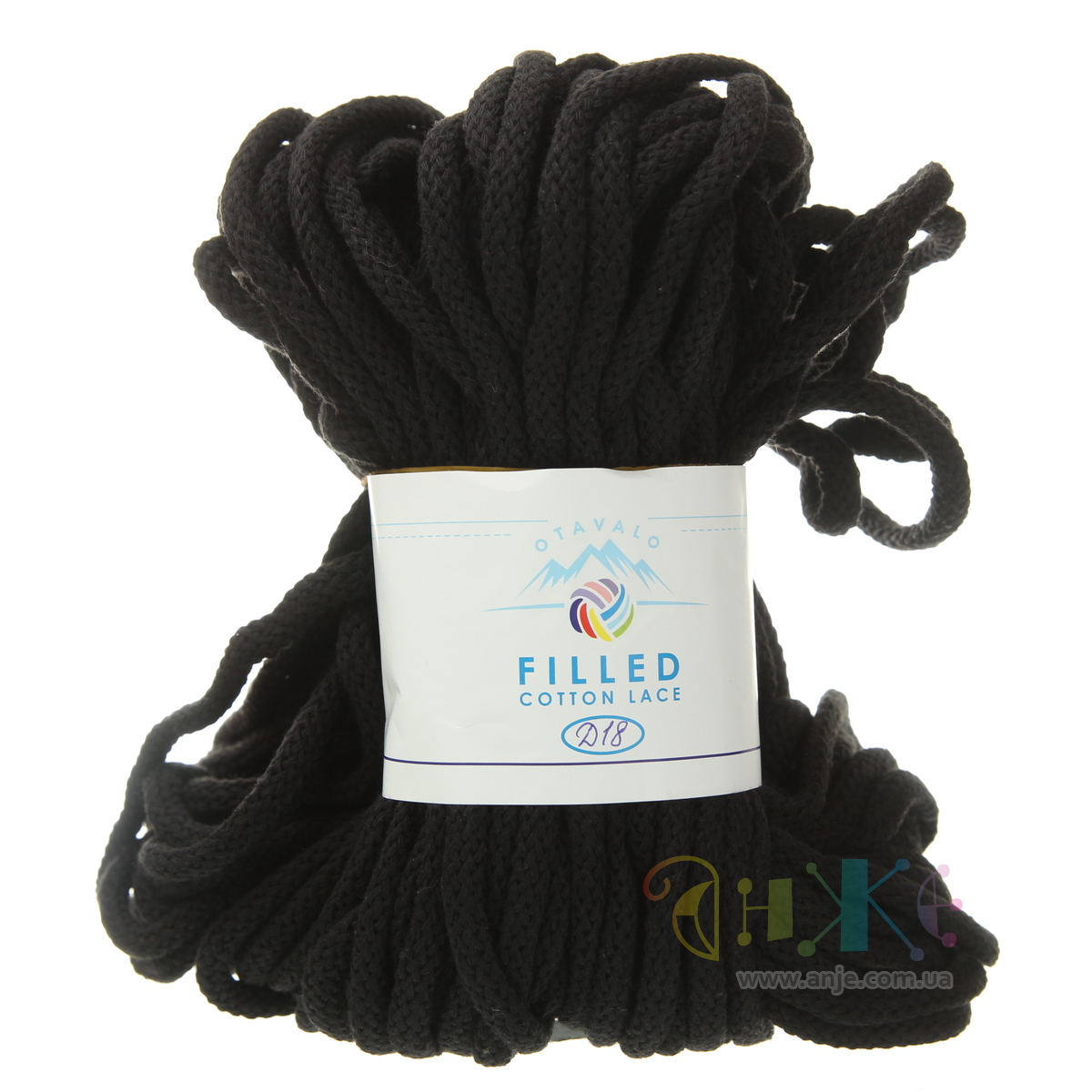 Пряжа  »  OTAVALO  »  Шнурок Filled Cotton Lace 5 mm  »  D18 черный